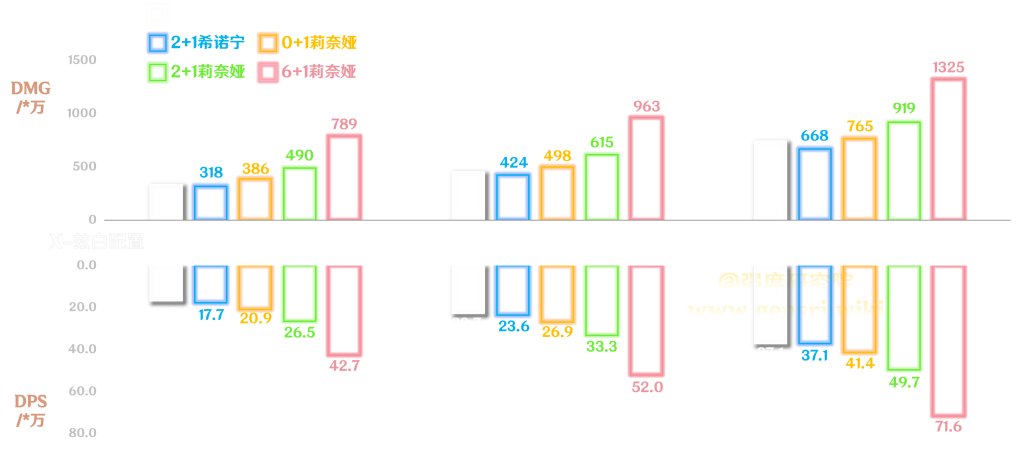 五郎轴长20s,希诺宁轴长18s,莉奈娅轴长18.5s,因此总伤&秒伤非线性比