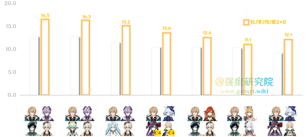 零命玛薇卡不施放元素爆发,队伍轴长为18.5s,其余均为20s